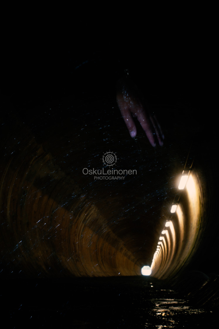 The Passage Beyond is a captivating series of self-portrait photos set in an old, rare, round tunnel, offering a journey through a liminal world between shadows and light. The tunnel's dark, wet walls and reflective puddles create a moody aesthetic, enhanced by the character’s long, turned coat and hat. Murky tones and earthly hues dominate the scene, evoking an ethereal atmosphere where time seems to blur. The interplay of shadow and light brings a cinematic feel to this mysterious space, where the character emerges from the darkness, backlit by the faint glow of light at the tunnel’s end. This series invites the viewer into a hidden journey, a visual storytelling experience where urban decay meets contemplative beauty.